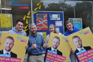 Thomas Müller mit den Mitstreitern der Jungen Liberalen vor der Kreisgeschäftsstelle der FDP