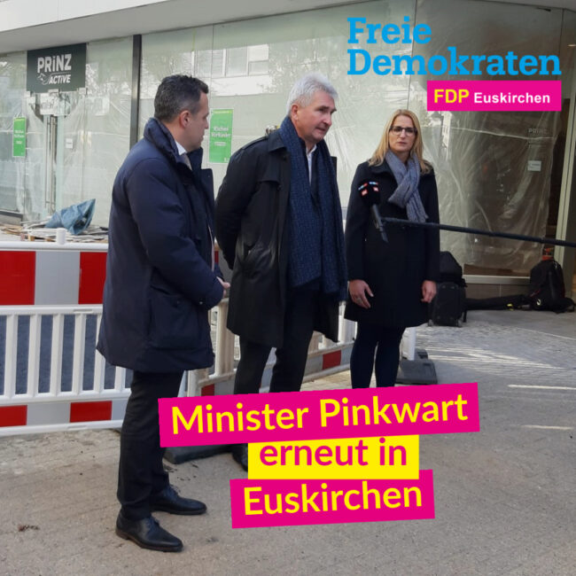 NRW-Wirtschaftsminister Prof. Andreas Pinkwart (FDP) besuchte nach der Flutkatastrophe bereits zum zweiten Mal Euskirchen, um vor Ort mit Bürgermeister Sacha Reichelt, Vertretern des Einzelhandels, der IHK sowie weiteren Akteuren die Situation und Problemlagen zu erörtern. Auch dabei war der Fraktionsvorsitzende der FDP-Stadtratsfraktion, Manfred van Bahlen. Für Minister Pinkwart ist klar, dass Euskirchen als die größte…